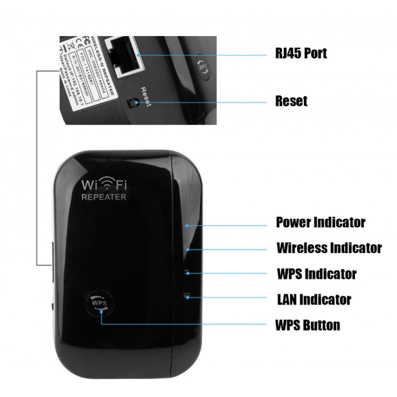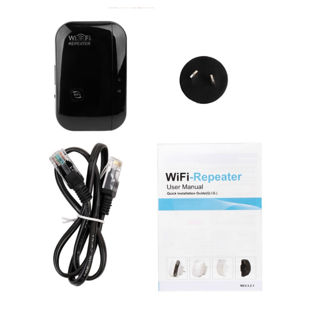 1x Wireless WiFi Repeater 1x RJ-45 Networking Cable 1x Installation Guide