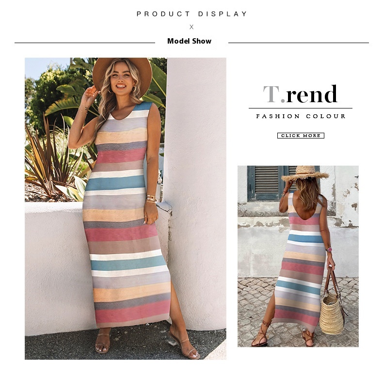 Main attributes Colorful Stripes High-waisted Skirt Dress Women