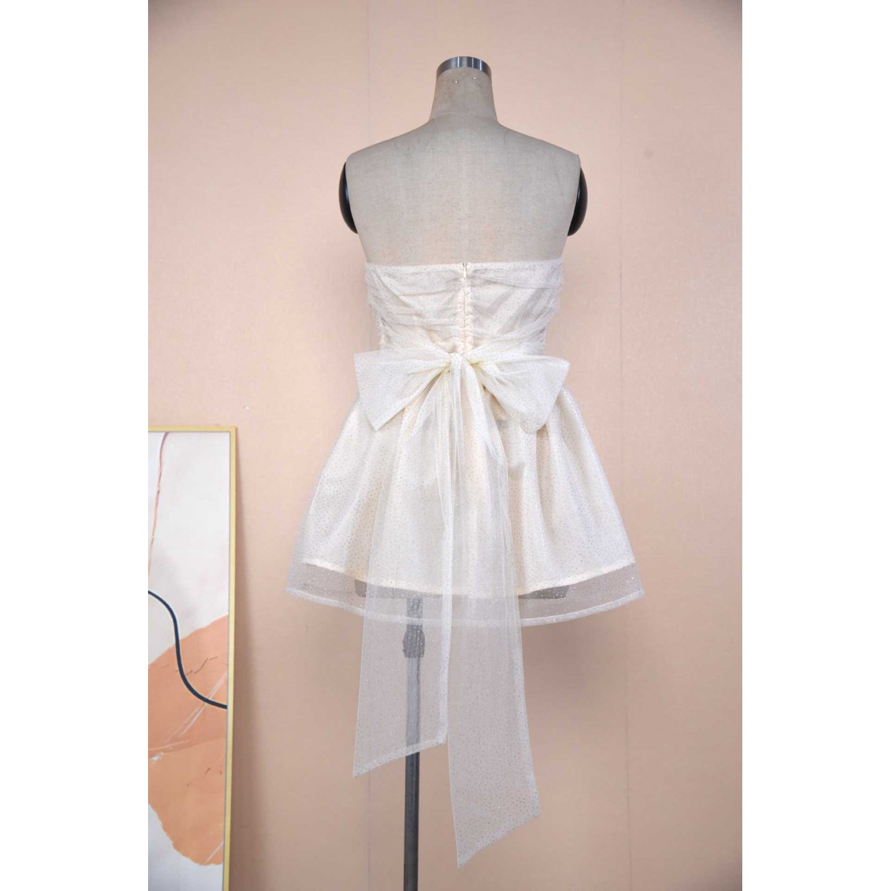 Description Lace Tube Top Dress Summer Mesh Bow Short Skirt