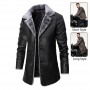 Description Plush Lapel Leather Jacket Winter Warm Fleece Single-breasted Coat For Men Long Clothing