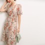Reviews about Silk Dress Summer French V-neck Lace Up Style Waist Fairy Print Silk A-line Skirt