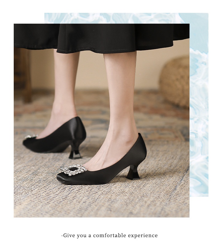 Main attributes Square Toe Stiletto Heel Low-cut Rhinestone Square Buckle Classy Shoes