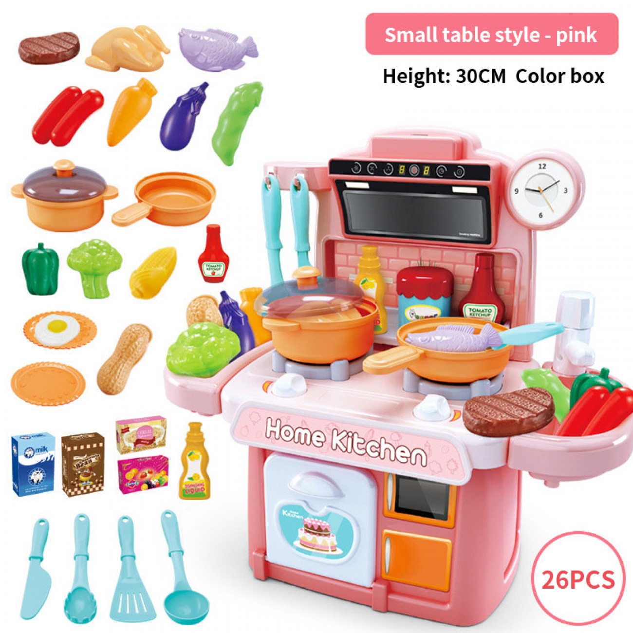 Featured function: play house/sound, light and sound effect/automatic water outlet