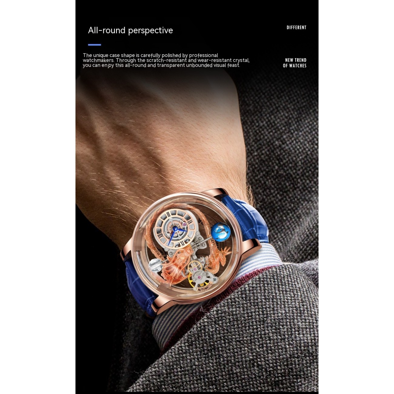 Color: rose gold shell Blue Ribbon [Panlong], Silver Case Black Belt [Panlong series], Rose Black Belt [chasing Dragon], rose Blue Ribbon [chasing Dragon], silver black belt [chasing Dragon]]