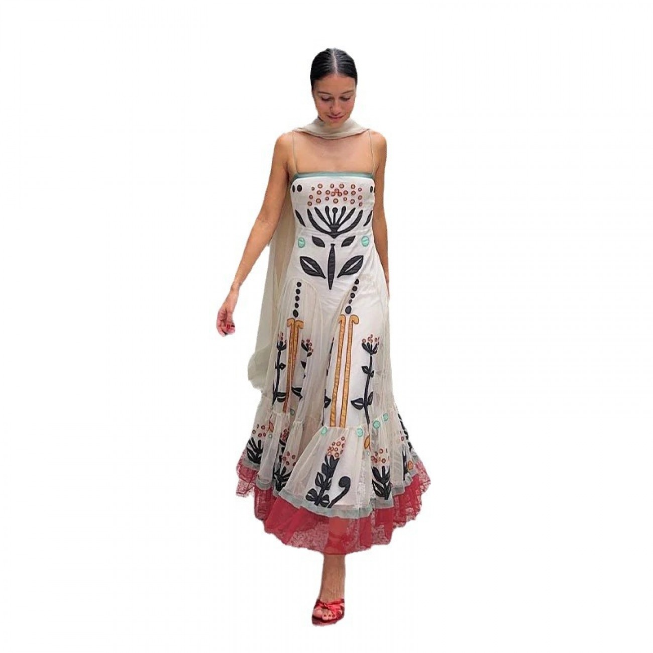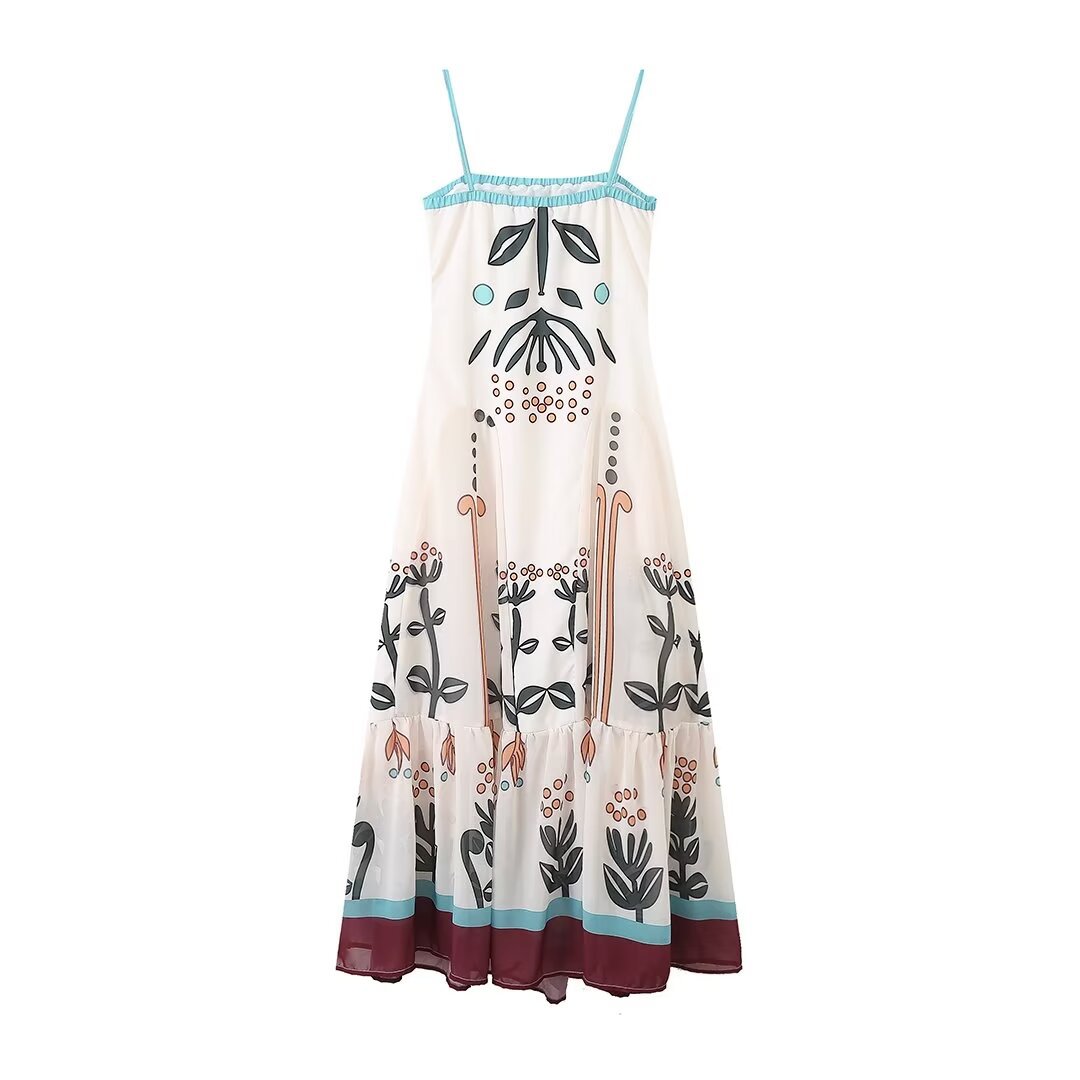 Main attributes Women's Chiffon Printed Sling Flower Embroidery Dress