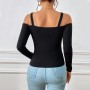 Description Women's Spring And Summer Fashion Simple Suspender Off-Shoulder Metal Hook Long-Sleeved Sexy Top